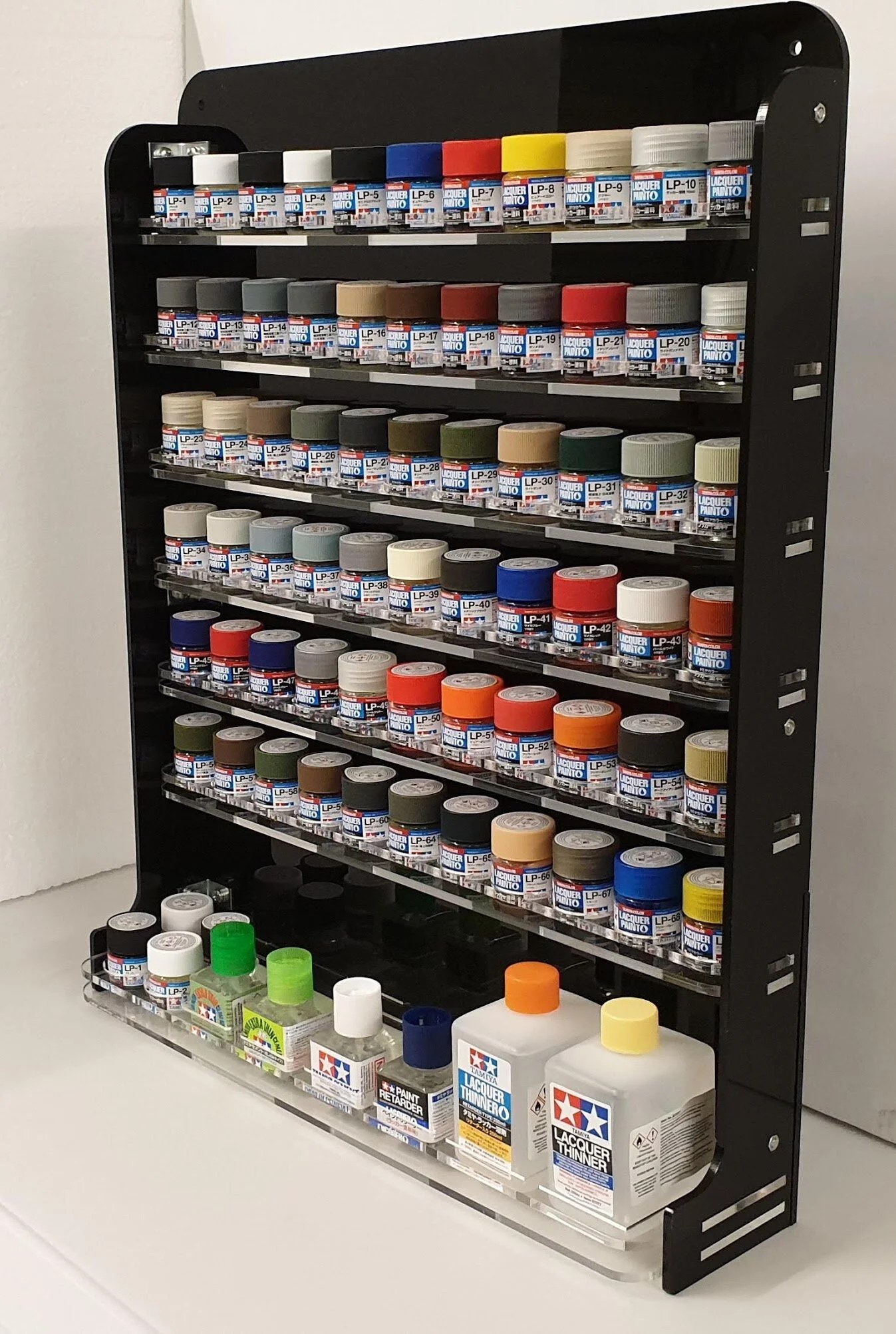 Tamiya acrylic/poly thinner x20a 8.5 oz hobby and model acrylic paint #81040. Sanfurney paint rack stand pigment ink bottle paints tool storage with cabinet holder organizer for . Holds 33 paint bottles (35mm diameter and under); Popular items in this department. I needed to organize my work shop.